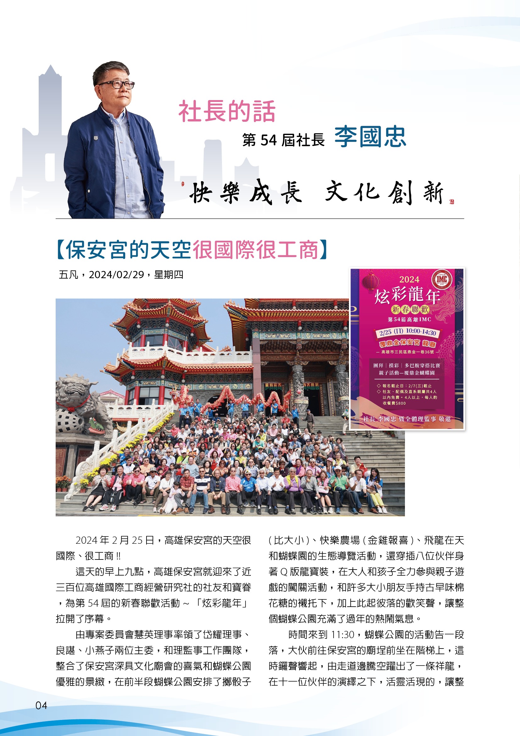 3月份社長的話 By 管理員|2024-03-20T23:42:52+08:002024-03-20|最新消息, 社長的話|在〈3月份社長的話〉中留言功能已關閉 請選擇您想分享的平台! FacebookXRedditLinkedInWhatsAppTumblrPinterestVkXingEmail: About the Author: 管理員 相關文章: 高雄IMC第56屆1月份社刊 高雄IMC第56屆1月份社刊 IMC社長的話 IMC社長的話 IMC社長的話 IMC社長的話 高雄IMC第56屆十二月份社刊 高雄IMC第56屆十二月份社刊