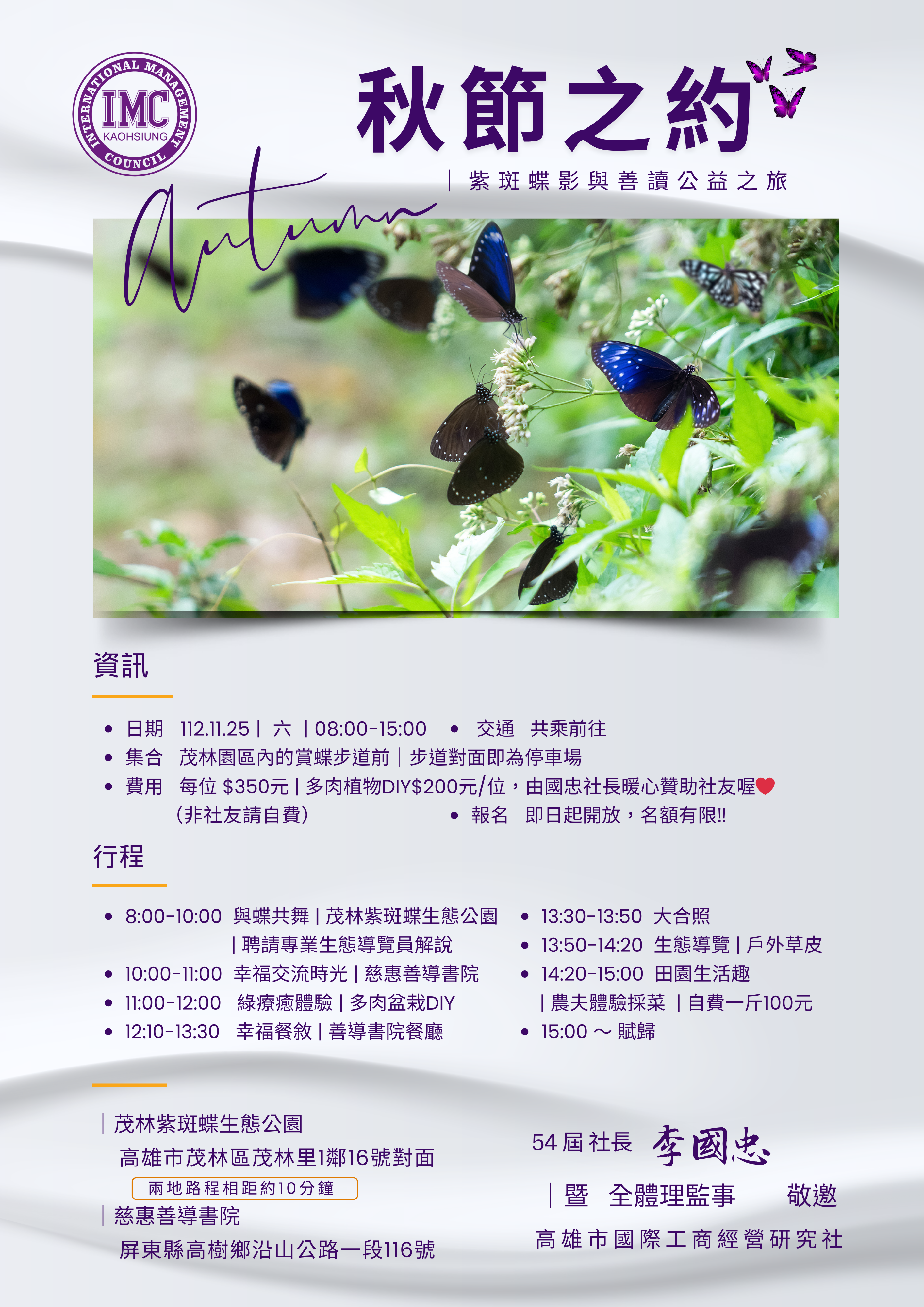 IMC秋季一日遊活動 By 管理員|2023-10-22T00:11:56+08:002023-10-22|最新消息|在〈IMC秋季一日遊活動〉中留言功能已關閉 請選擇您想分享的平台! FacebookXRedditLinkedInWhatsAppTumblrPinterestVkXingEmail: About the Author: 管理員 相關文章: 高雄IMC第56屆1月份社刊 高雄IMC第56屆1月份社刊 IMC社長的話 IMC社長的話 IMC社長的話 IMC社長的話 高雄IMC第56屆十二月份社刊 高雄IMC第56屆十二月份社刊